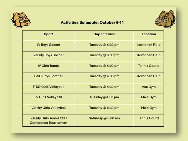 Grades 9-11 will be taking the Pre-ACT on Thursday, October 9. For seniors, this will be a non-attendance day. Parent Teacher Conferences will be held in the Main Gym from 1:00-3:00 pm and via Zoom from 6:00-8:00 pm. Parents should schedule virtual conferences from 6:00-8:00 pm on Skyward.